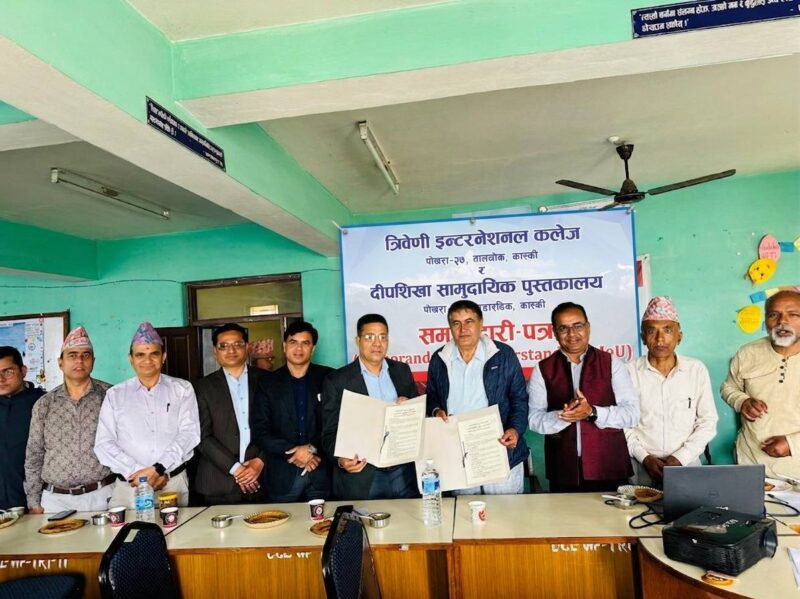 त्रिवेणी इन्टरनेशनल कलेज, पोखरा -27, तालचोक, कास्की र दीपशिखा सामुदायिक पुस्तकालय, पोखरा – 29 भण्डारढिकबीच आज Memorandam of Understanding (MoU) कार्य सम्पन्न भएको छ। यो केवल औपचारिक सहमतिभन्दा पर, ज्ञान, सहकार्य र सामाजिक उत्तरदायित्वको साझा यात्रातर्फ उन्मुख एक अर्थपूर्ण आरम्भ हो। यसले कलेज, विद्यार्थी र पुस्तकालयबीचको सम्बन्धलाई अझ प्रगाढ बनाउँदै पारस्परिक सहयोग, स्रोत आदान–प्रदान तथा...Read More